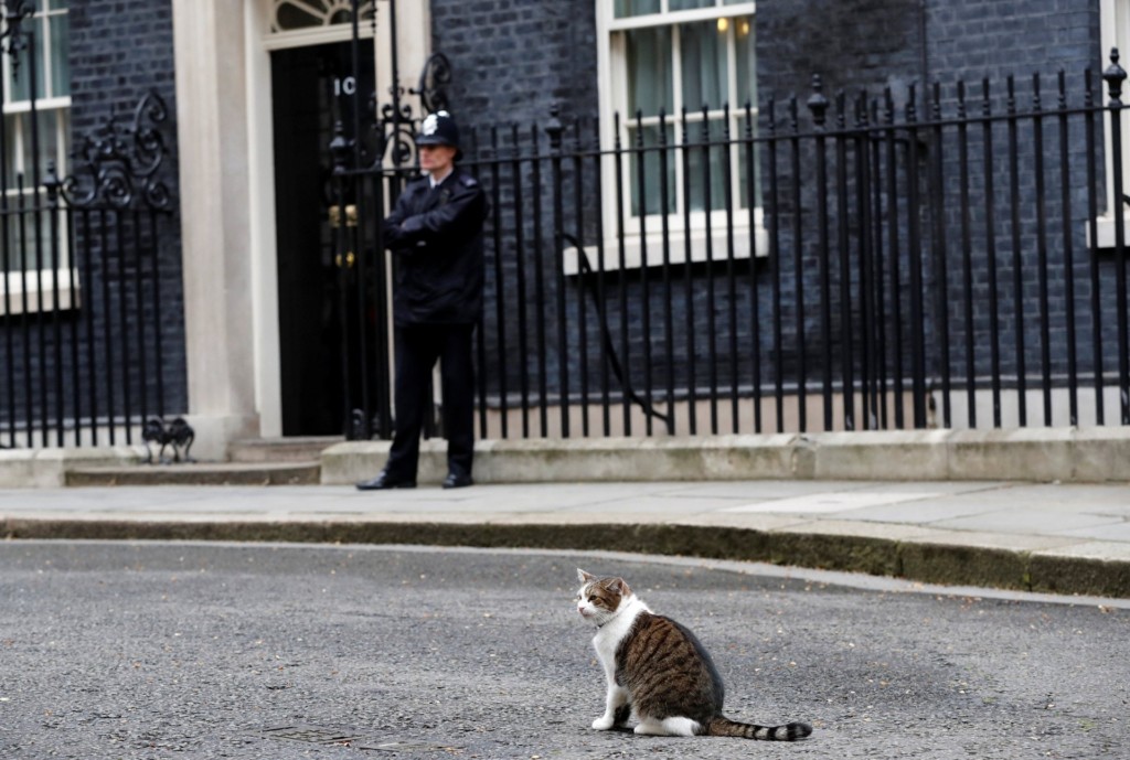 近期英國跟歐盟因為脫歐協議,而讓英國政壇情勢感到緊張,許多媒體都守在首相的官邸,希望可以搶先拍到第一手最新的資訊。而其中卻有媒體不小心拍到Larry散步回來,卻沒有人幫牠開門的尷尬狀況:「本皇回來了,快點開門啊!」