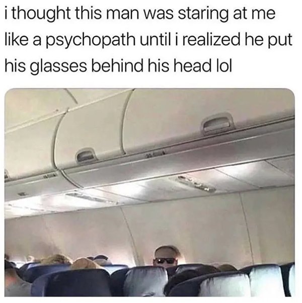 3. 「我一直以為有一個男的在那邊緊緊的盯著我看,後來我才發現他只是把墨鏡戴在後腦杓……」