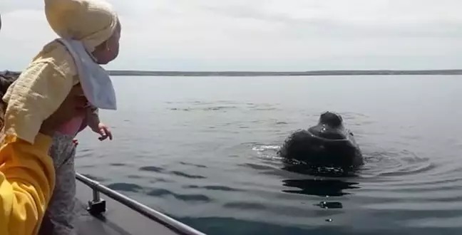 人類和狗狗玩捉迷藏應該是再平凡不過的事,但如果人類和鯨魚玩捉迷藏的話可就神奇了!日前在阿根廷的某一艘觀鯨船上就出現了讓人難以置信的畫面:一隻大鯨魚正在跟6個月大的寶寶玩捉迷藏!