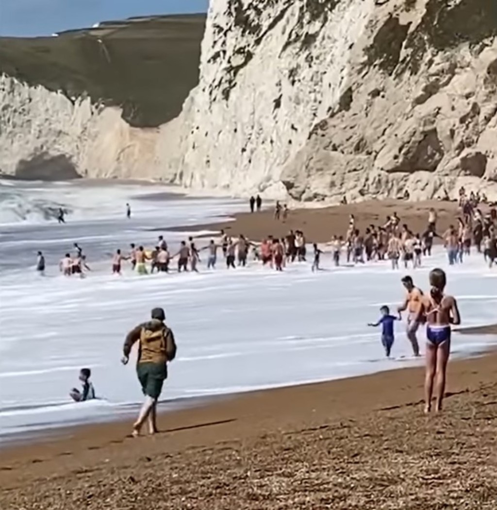 這件事情發生在英國著名景點杜德爾門 (Durdle Door) 海灘,當天年約30歲的男子原本開心的在海裡游泳,沒想到卻突然颳起大風跟巨浪,讓他根本回不了岸邊,只好不斷在海面上揮手,跟沙灘上的人求救。