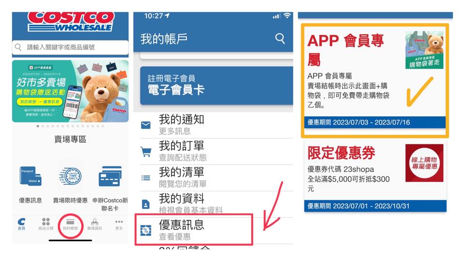 一位網友在臉書社團《Costco好市多 商品經驗老實說》分享情報,教大家去好市多結帳時記得打開APP,就可以給店員刷條碼拿到免費的好市多購物袋,「畫面點進去就會出現條碼,讓結帳人員刷一下,就能獲得購物袋一個」。原PO去北台中店在店原的引導下兌換到灰色的版本。
