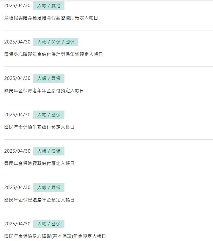 勞保局公告,本月預定有20筆金額入帳,項目包含勞保、災保、國民年金 (國保) 、農退、勞退等。今天 (15) 有一筆預訂入帳的款項為「國民年金保險喪葬給付」,最多可一次領約10萬元。