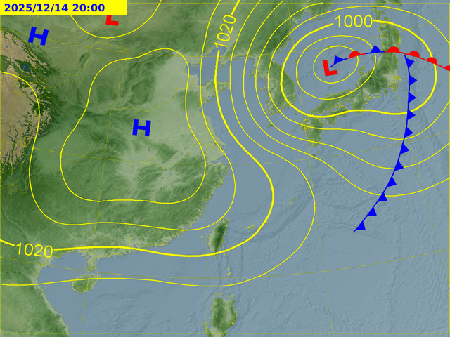 吳聖宇分析:「週日 (14) 中高層短波槽底經過台灣以北向東移動,槽後中高層西北風南下,冷空氣增厚,底層東北季風也充分南下,冷平流明顯,同時空氣明顯轉乾,各地大致都是晴到多雲天氣。」溫度將於週日轉冷,尤其是北台灣感受最明顯,北部、東北部白天高溫16~18度,中部及花東地區高溫20~23度,南部受影響就相對較小,高溫仍可達24~26度。
