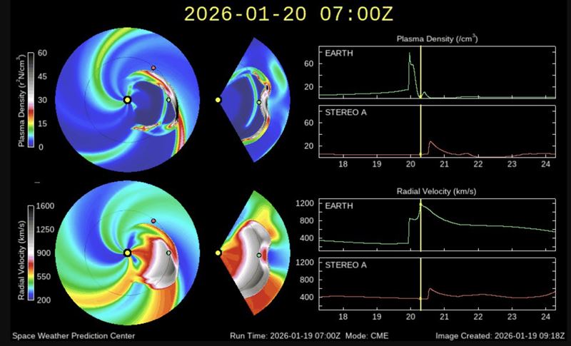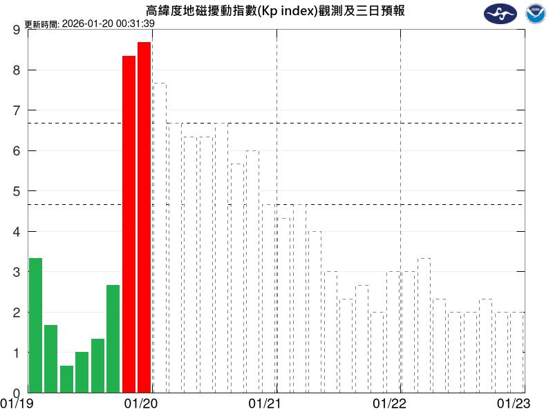 美國國家海洋暨大氣總署 (NOAA) 預估這場地磁擾動將會明顯增強並持續影響約36小時,最大規模可能短暫達到劇烈磁暴等級 (G5),屆時中緯度地區 (地磁緯度40度) 都可能見到極光活動。