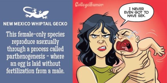5. 新墨西哥州鞭尾蜥只有雌性品种没有雄性品种,她们透过一种叫做孤雌生殖的方式无性生殖,不需受孕就能下蛋。