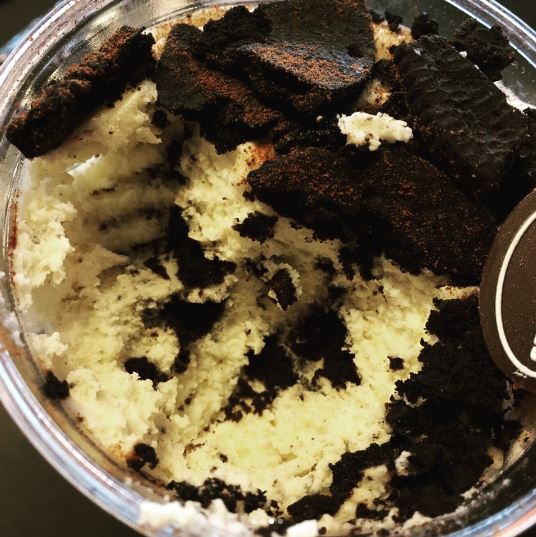 6. 直接一勺從底部大力挖下去,奶油餡與扎實苦澀黑巧克力餅乾,霸氣一口送入嘴中,鬆軟酥脆的綜合口感,讓人不上癮也難!