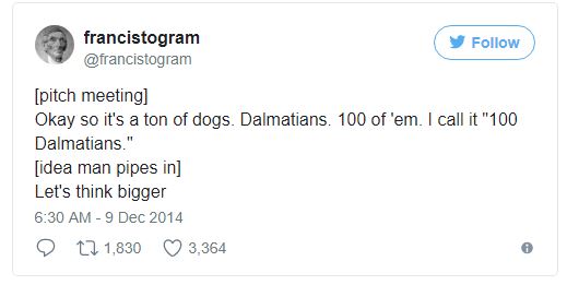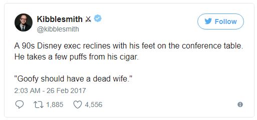 6.「90年代的一位迪士尼高層把雙腳放在會議桌上,抽著幾口雪茄,『高飛狗應該要有個死掉的老婆。』」