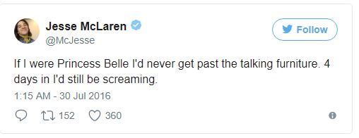 5.「如果我是貝兒我會受不了那些會講話的傢具的。4天我就會開始尖叫。」