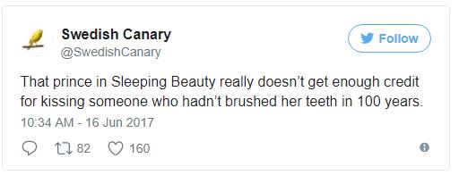 7.「《睡美人》裡面的王子應該要被更多人讚賞,他親了一個100年沒刷牙的人。」