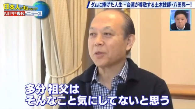 原來八田與一在日本知名度很低,於是節目組就千里迢迢探訪八田與一的後代子孫,當時節目組還問孫子「對於祖父在日本知名度很低有什麼看法」時,年邁的孫子則大方表示:「我覺得祖父應該不會介意才是」,認為「他發揮土木技術就是要讓當地人幸福」。