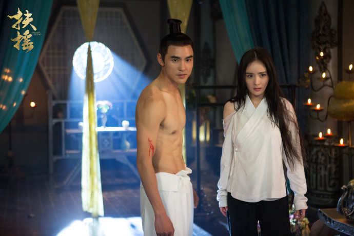 楊冪自從與趙又廷演出《三生三世十里桃花》後,再創事業一大高峰,最近又與另一個性格男星阮經天搭檔演出新戲《扶搖》,在劇裡阮經天衣服總是穿不好,讓觀眾們看的是既害羞,又忍不著為編劇、導演叫好。近期收視率不停屢創新高已經破了十億的超高點閱率,最近劇組又po出