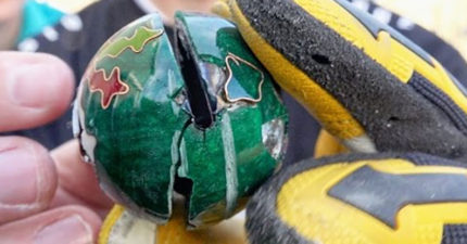 他們把握起來內部感覺很神祕的「保定球」用電鋸切開,看到裡面的架構真的太意外了!