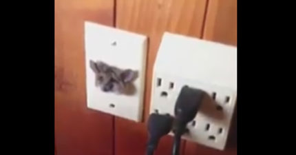 他在家裡拿插頭去插插座,但沒想到一靠近就看到了「不可能的卡通情節」…