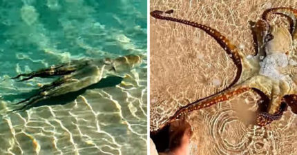 她看到「章魚困在淺灘快死」順手推回海裡,隔天章魚原地等她「堅持回來報恩」!(影片)