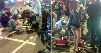 3機車追撞煞不住「滑進奧迪屁股」,網友竟然只歪樓關心「那雙腿沒事吧?」