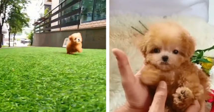 可愛到像假的!小萌狗在草地上奔跑 邊跑邊滾超療癒:根本像小熊娃娃~