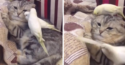 捏把冷汗!摺耳貓咪躺著休息被鳥糾纏 厭世斜眼瞪:朕不是白雪公主,麥剎~