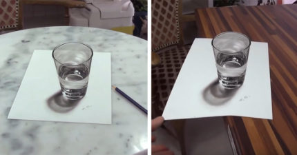 水杯要掉了!杯子壓著紙張表演特技 角度一轉竟是「3D畫」欺騙視野