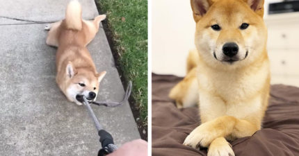 柴柴咬牽繩不想回家! 主人一路拖「頂級柴魚」哭笑不得
