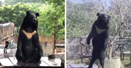 台灣黑熊淡定盤腿打坐 遊客驚呆接著「2腳站起」:工讀生給我滾出來!