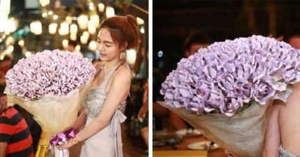 正妹手摺「10萬紙鈔玫瑰花束」當生日禮物 男友嚇到跪下