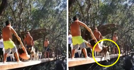 我只是站得比較前面QAQ 狗狗「路過」結果飛入海 網笑哭:後勁很強