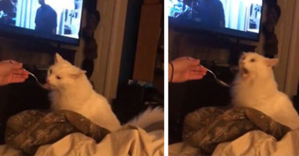白貓熱到狂舔冰淇淋 一秒變臉:尬的!窩有敏感性牙齒