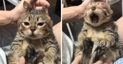 虎斑猫被铲屎的扮成「兔耳喵」 拍腿怒骂:喵的咧!俺是猫~