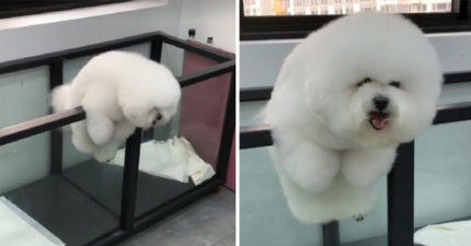 比熊上演「越獄風雲」卡半空短腿狂踢 網笑:月球漫步?