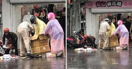 大雨回收嬤東西撒滿地 快遞員「一個神助力」揪甘心