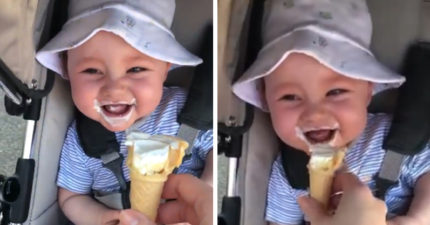寶寶第一次吃冰淇淋 一臉「發現新大陸」笑不停:這什麼~太好吃了~