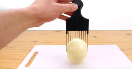 你一直以來切洋蔥的方法都太不專業了!只要先把這種女生用的髮簪插進去,10秒後…