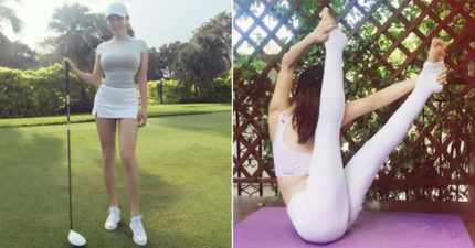 輕熟女練瑜珈姿勢太夭壽「深V看光光也太狂」!網友傻眼「球大成這樣還能深蹲?」