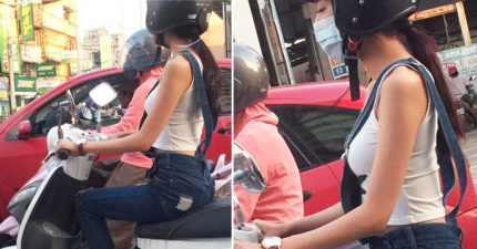 他等紅綠燈被隔壁「側乳機車妹」震驚到差點被後方輾過,口罩拿下來「超像白歆惠」!