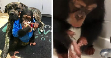 萌爆點!小猩猩完全3歲小孩樣 左搓右揉學洗手:哦~好多泡泡出乃了~