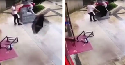 山竹狂颱一日毀港澳 監視器出現「龍爪大哥」單手抓黑傘…網嘆:這拍功夫片?