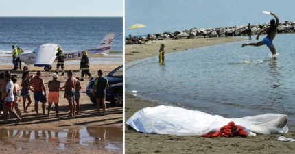 中年老伯和女童海灘曬日光浴,突然「天降奇機」被當場撞死!