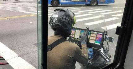 超狂騎士「停紅燈滑6支手機」…照片驚呆網友:「根本移動式神主牌!」先別急著開罵!