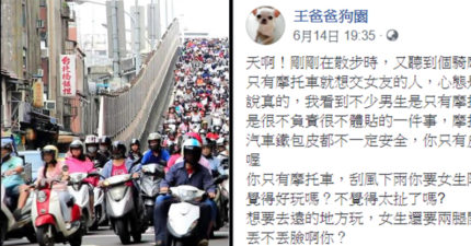 沒四輪不要把妹!他砲轟台男騎車想交女友可恥 「兩腿開開陪玩」根本糟蹋愛人