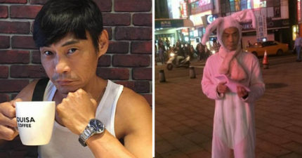 影帝夏靖庭「在西門町街頭落魄發傳單」眼神死,穿粉紅兔子裝「辛苦求生活」明星光環全黑了!