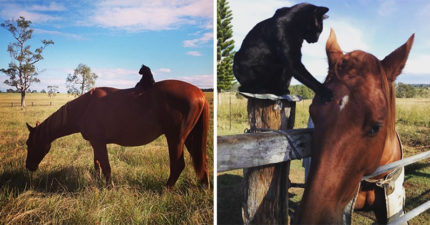 跨越物種的愛情!駿馬對小黑貓「一見鍾情」相伴6年 主人:每天都曬恩愛…受不了