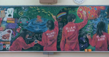 15幅高中生「下課留在教室」不讀書 把「黑板→3D藝術」的超震撼成果!