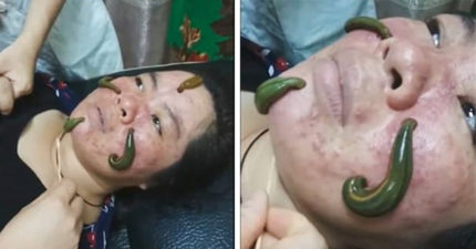 噁爆!強國女任「4條肥水蛭在臉上爬」吸除痘痘…美容師強調:「除逗、皺紋、老人斑」(影片)