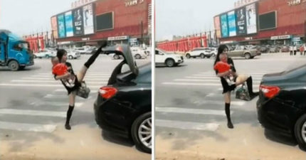 中國女生瘋「一字馬關後車廂」大秀性感美腿!網點破「腿盲點」(影片)