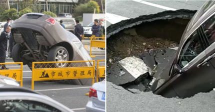妙禪的同款車!大馬路突裂現180cm天坑,2000萬勞斯萊斯GG了…(影片)