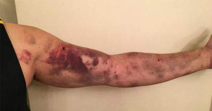 男子倒垃圾「被怪蟲咬一口」,幾小時後「整隻手臂瘀青」像被卡車輾過!