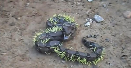 巨蟒想要一口氣吞下豪豬,下場讓牠後悔死!(影片)