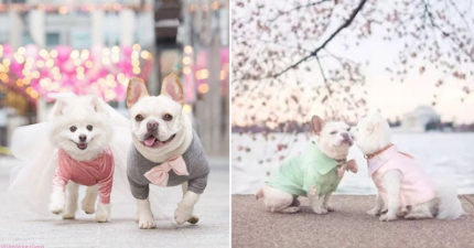 8張把單身狗閃瞎的超人氣「帥哥法鬥+網紅博美」浪漫婚紗照,#8老夫老妻POSE太犯規了!