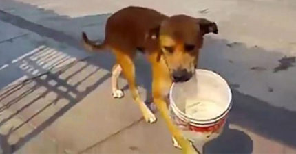 缺水太嚴重,狗狗街上「咬著水桶」到處向人乞討讓網友心痛!「不得不低下頭」其實超聰明!(影片)