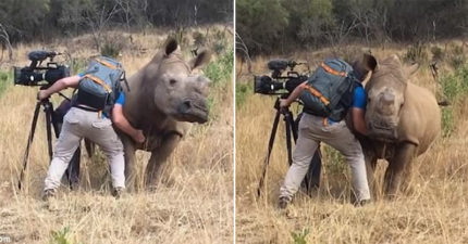 「大犀牛衝過來時」還以為他死定了,結果「94那邊不要停!」超傲嬌求抓癢萌死全網路!(影片)